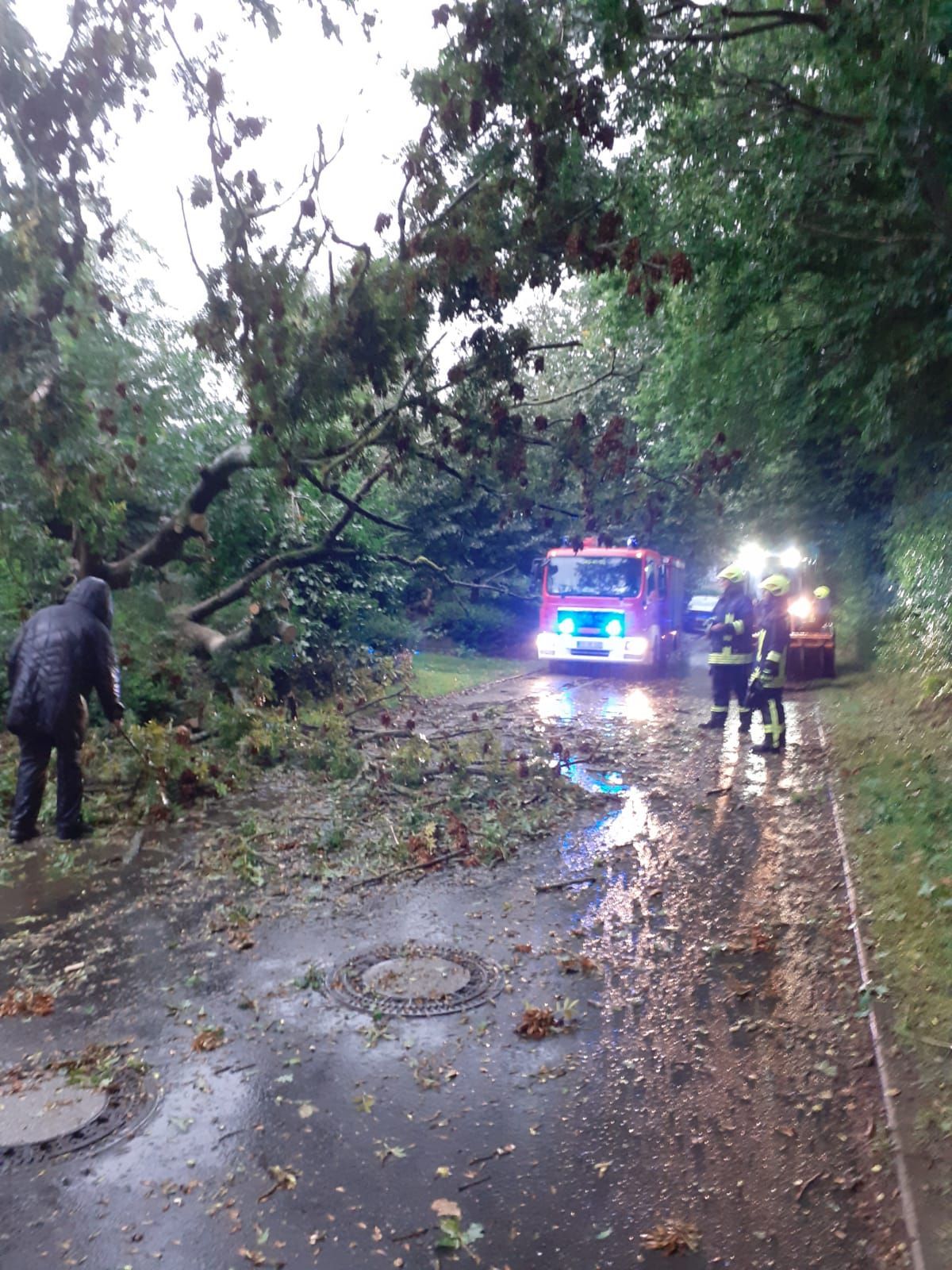 Eine Fehlfunktion eines Rauchwarnmelder hat zur Auslösung der Brandmeldeanlage (BMA) geführt. Daraufhin wurden über die Leitstelle die Feuerwehr Breiholz und Hamdorf alarmiert. Auf der Anfahrt wurde bereits über die Leitstelle mitgeteilt, dass die BMA wieder ausgeschaltet wurde und es sich wahrscheinlich um einen Fehlalarm handelt. Beim Eintreffen unseres MLF konnte keine Gefahr festgestellt werden. Die BMA wurde wieder zurückgestellt und das Fahrzeug ist wieder zum Gerätehaus gefahren. Dort angekommen wurden wir über einen umgestürzten Baum im Sujendamm informiert. Als wir gerade am Sujendamm angekommen waren und den Baum beseitigen wollte, informierte uns die Leitstelle per Funk, dass die BMA wieder ausgelöst wurde und wir sind direkt wieder in die Hauptstraße gefahren. Der umgestürzte Baum im Sujendamm wurde währenddessen von dem LF8 beseitigt, ebenso ein Baum im Lagensweg. Das MLF konnte auch diesmal keine Gefahr feststellen, es musste von einem Defekt der BMA ausgegangen werden. Ein Techniker, sowie die Leitstelle wurden über den Defekt informiert und wir sind wieder eingerückt.